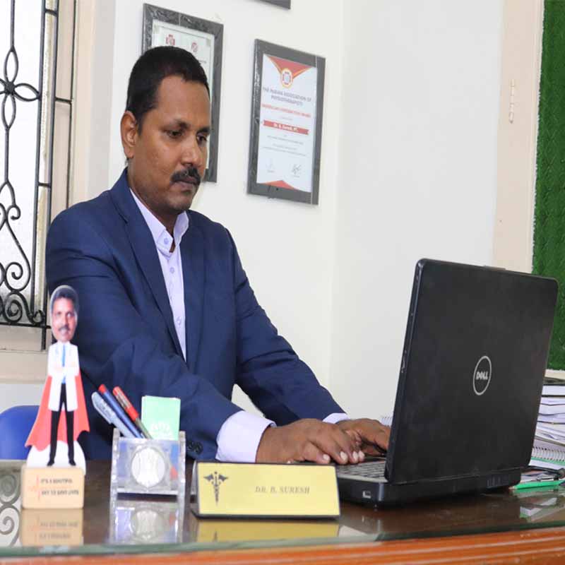 Dr. B. Suresh (P. T.) M. P. T. (Advanced PT in NEURO) is an alumni of KMCH Allied Health Sciences College (Under The Tamil Nadu Dr. M. G. R. Medical University). He was the Topper in advanced PT in NEUROLOGY. He is a specialist in Manual therapy with 25 years of professional experience for Treating and Curing Dysfunctions without medicines and surgery which otherwise would have needed surgery.